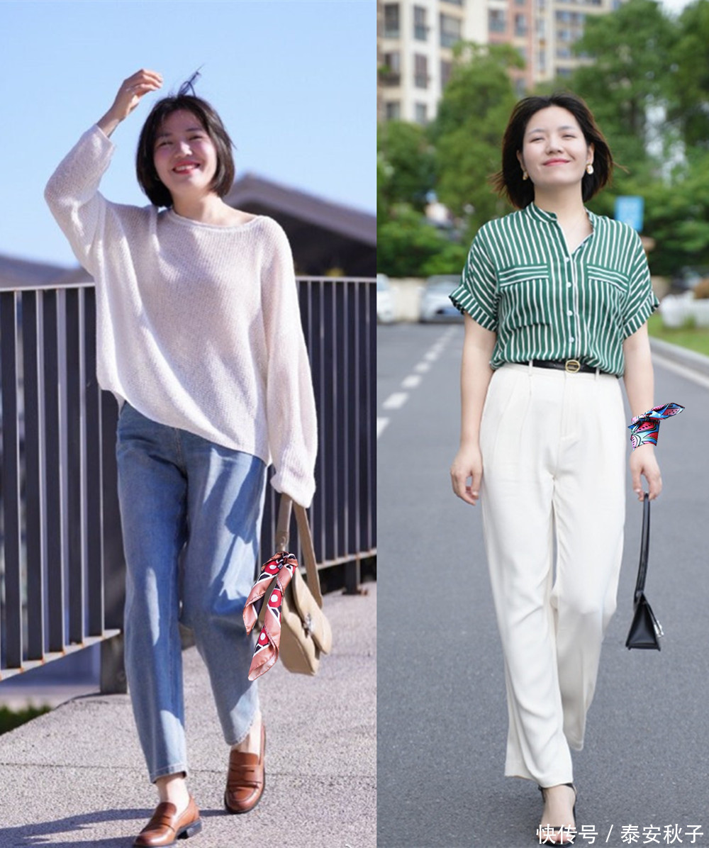 微胖女生念念要穿出显高显瘦的限制?还可以利用上宽下窄的穿搭时势,用略显宽松的小衫,单品修身性能极佳的高腰裤。